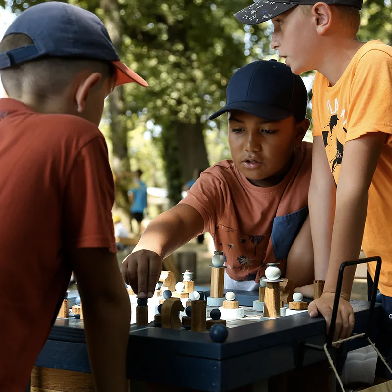 Les jeux en bois géants sont accessibles dès le plus jeune âge et permettent de rassembler petits et grands autour d’activités conviviales.