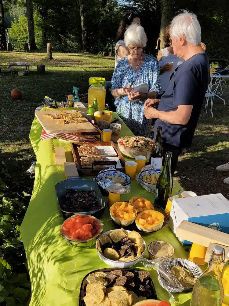 Repas en extérieur sous structure pour profiter du parc25 assis